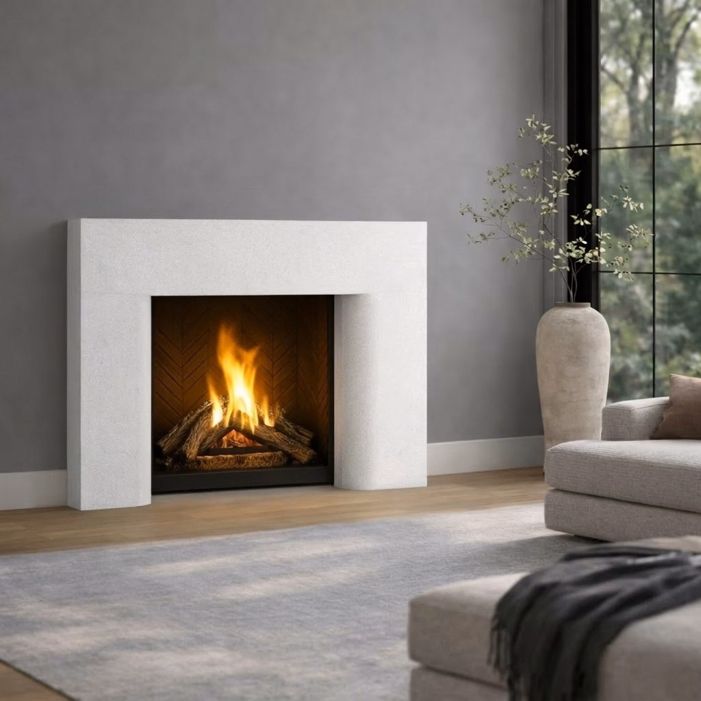The Bellagio fireplace mantel surround by Lyonstone blends architectural strength with rustic warmth in a design that feels both structured and inviting. Defined by deep side returns and a crisp frame, Bellagio creates a commanding focal point while a softened base curve adds warmth and charm. Its balanced silhouette works beautifully in interiors that value both comfort and strong architectural presence. Designed for homeowners and designers seeking a fireplace surround with visual depth, clean lines, and lasting appeal, the Bellagio combines bold form with an approachable overall feel. Customization options are available to suit your space and design needs.