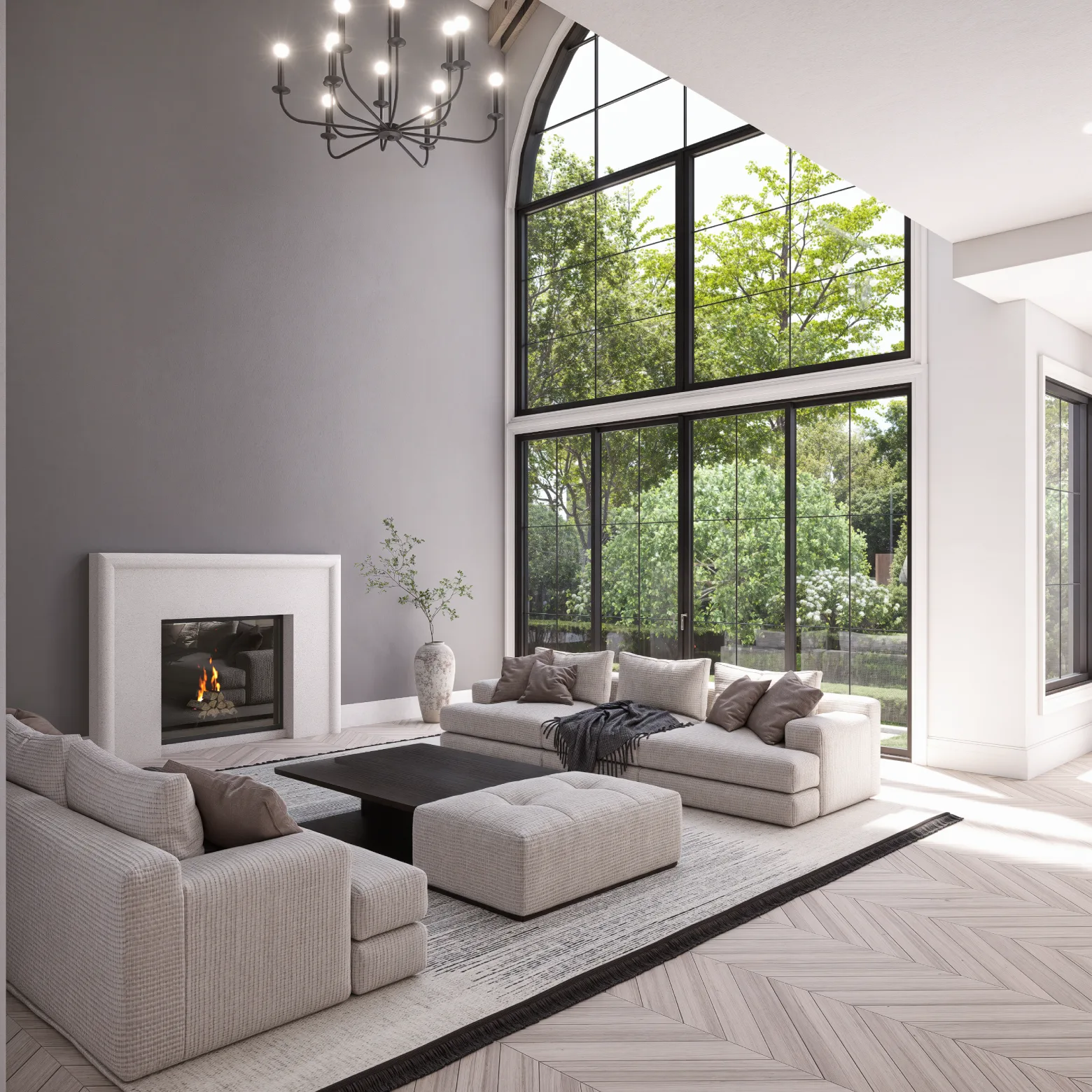 Warm and timeless, the Sterling mantel blends classic molding details with rustic simplicity. Soft corner curves and layered depth create structure while maintaining an inviting charm—ideal for open living rooms, farmhouse-inspired spaces, and interiors that balance comfort with modern design.