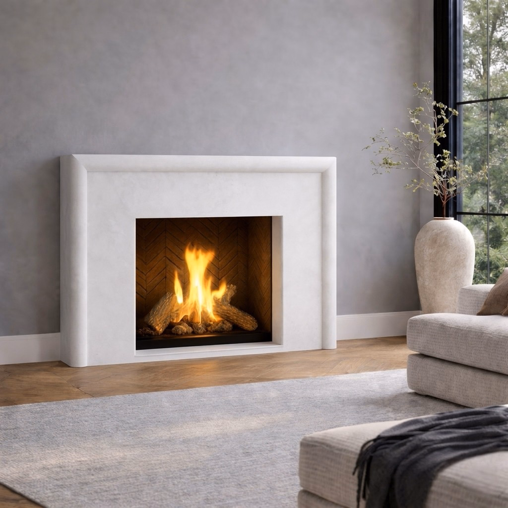 The Sterling is a modern limestone fireplace mantel that blends timeless character with rustic simplicity. Defined by classic molding details, soft corner curves, and layered depth, Sterling brings warmth and structure to living spaces while maintaining an inviting, approachable feel. Designed to complement open living rooms, farmhouse-inspired interiors, and homes that balance comfort with modern design, it creates a refined focal point with lasting appeal. Sterling is offered in multiple finish options, including Alpine Dust, Cascade Grey, Golden Clay, Limestone Veil, Mist Grey, Onyx Smoke, Tuscany Clay, and Urban Slate, and is engineered for clean installation and lasting durability. Ideal for designers and homeowners seeking a classic yet versatile stone surround, the Sterling pairs beautifully with both traditional and contemporary interiors. CAD files and customization options available – contact Lyonstone for sizing and finish details.