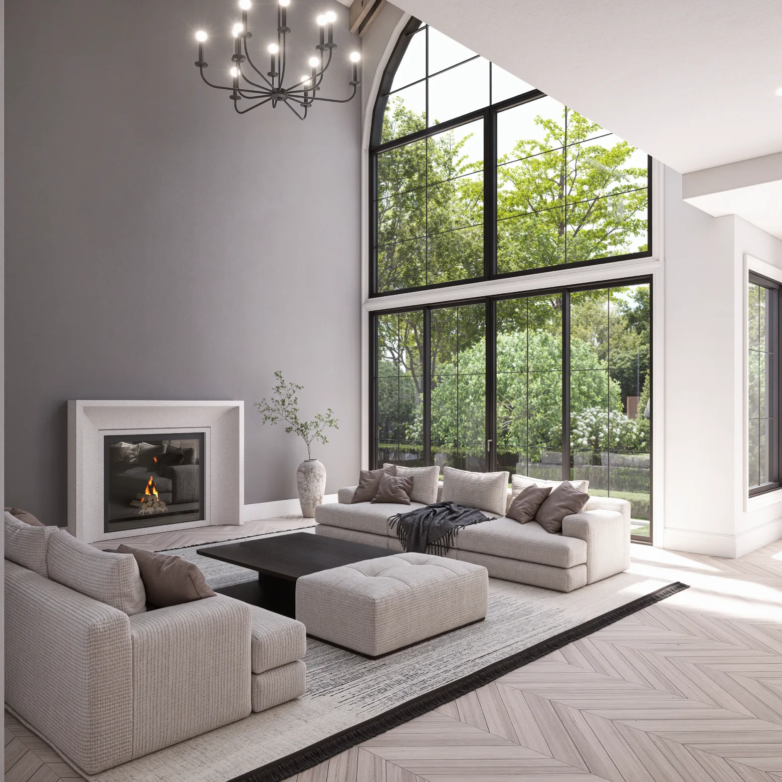 Blending rustic warmth with sculptural elegance, the Venus mantel showcases a recessed frame softened by a curved base. Its clean geometry pairs beautifully with natural textures like wood and linen, making it a welcoming centerpiece for farmhouse-inspired living rooms that balance comfort and refinement.